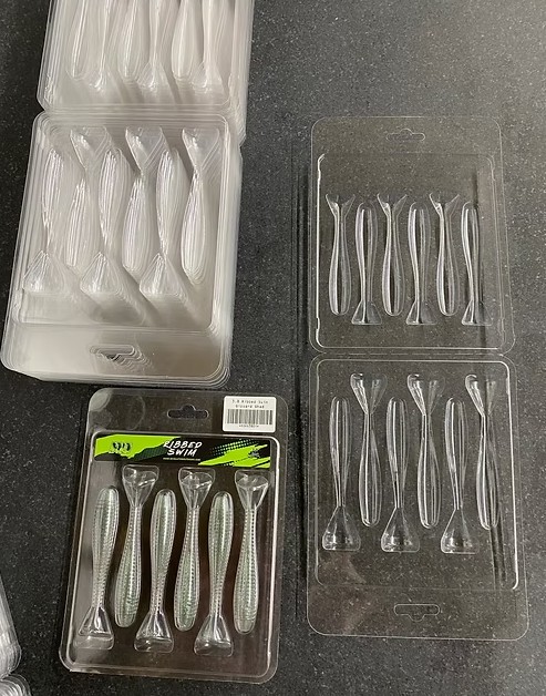 6 cavity clam shell that will fit 3.8” to 3.3” ribbed swim baits.